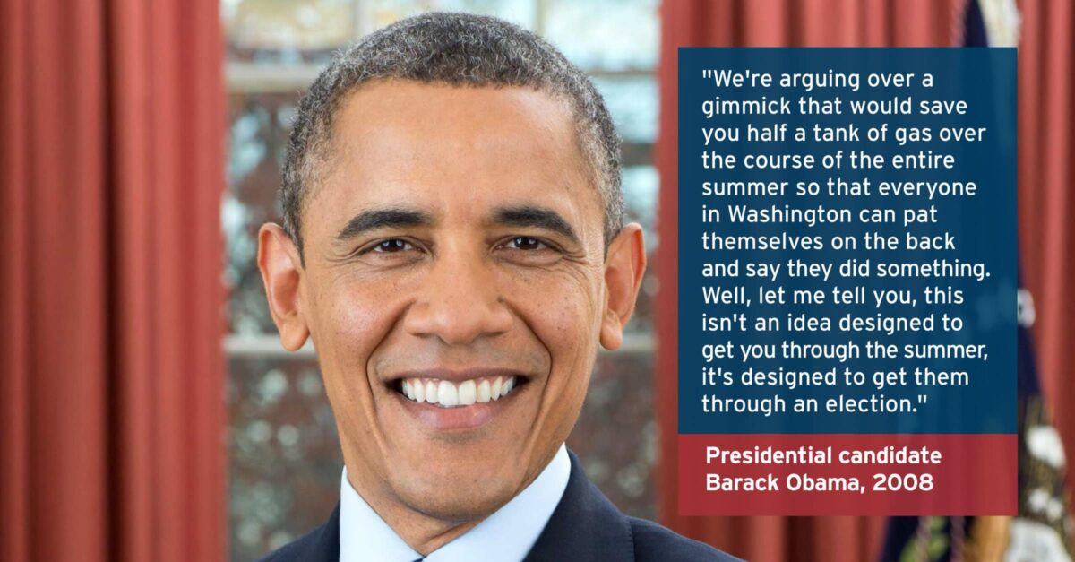 Right Then, Right Now: Obama Quote on Gas Tax Suspension Focus of New Ad Campaign