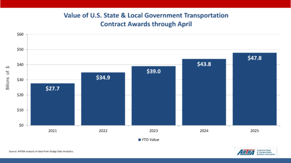 What happened: The total value of state and local government transportation contract awards was…