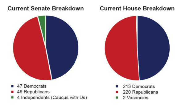 Neither party is expected to achieve a 60-seat supermajority required to overcome a filibuster. Democrats must defend twice as many seats as Republicans this cycle, and with Sen. Joe Manchin’s retirement (I-W.Va.) triggering an easy pick-up for Republicans, Democrats must win all toss-up races and the White House in order to retain a tie-breaking majority in the Senate.
