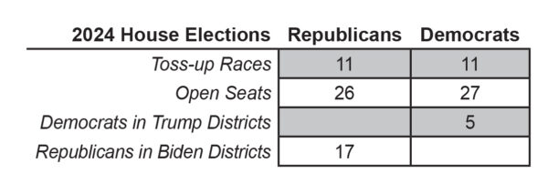 Close races and narrow margins will prevail, regardless of which party is in charge in the House.